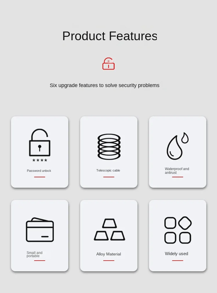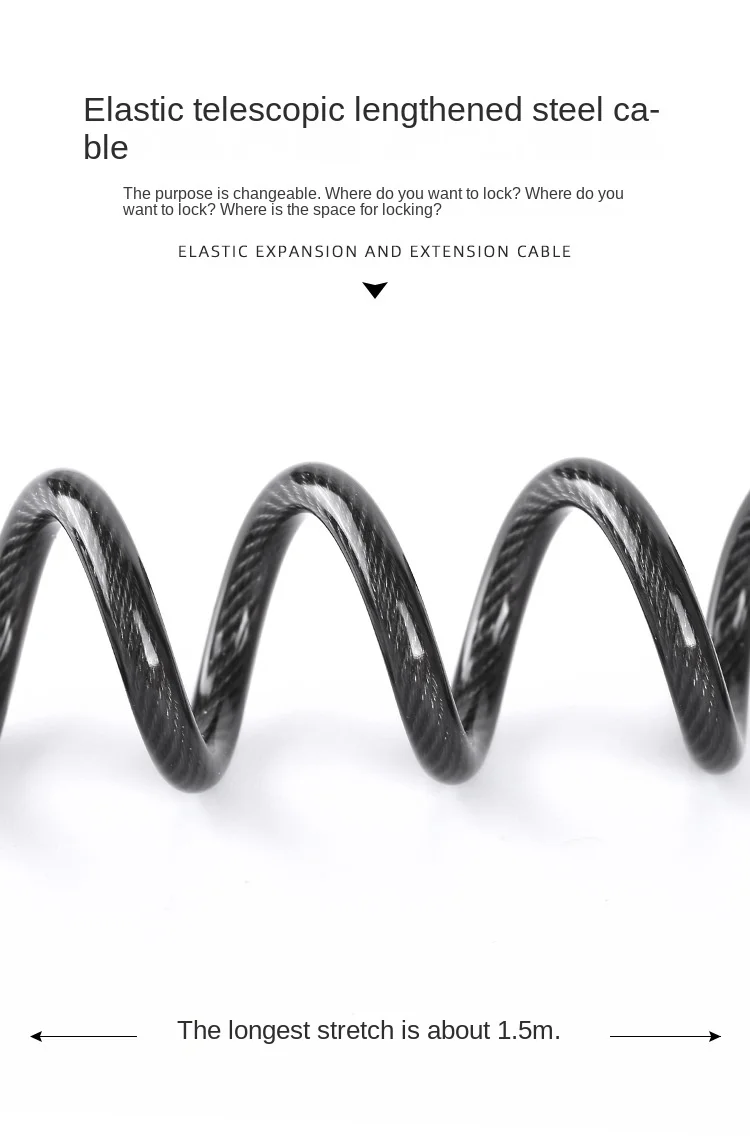 Elastic expansion and elongation of steel cables. Alloy lock core, wear-resistant and easy to lock.