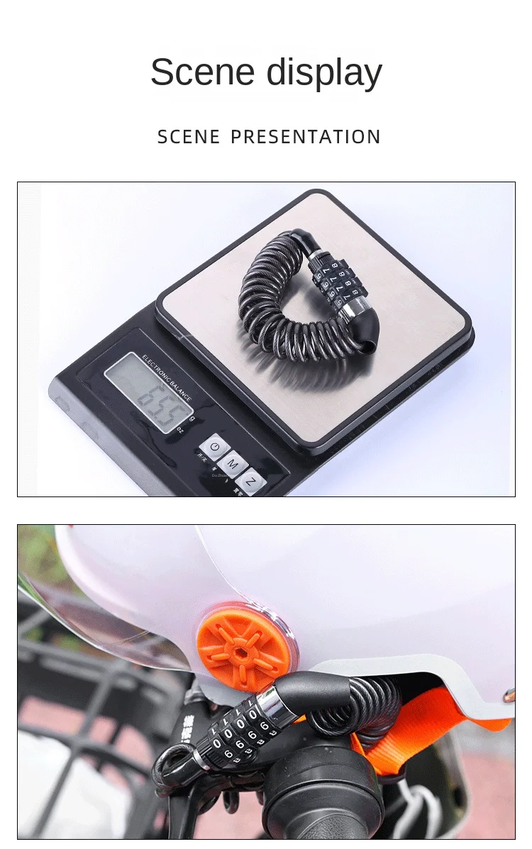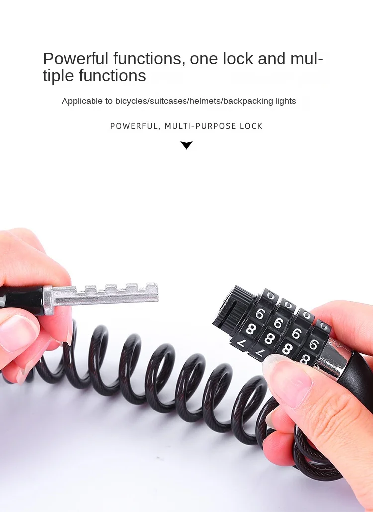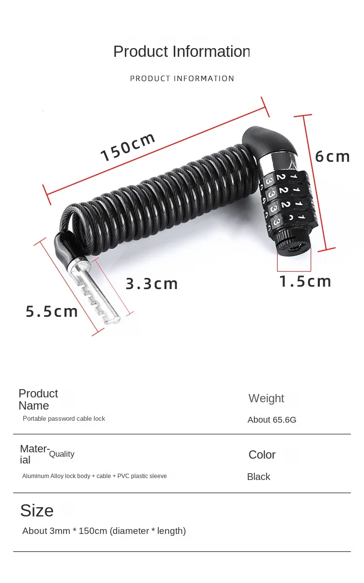 Material: Aluminum alloy lock body+steel cable+PVC rubber sleeve